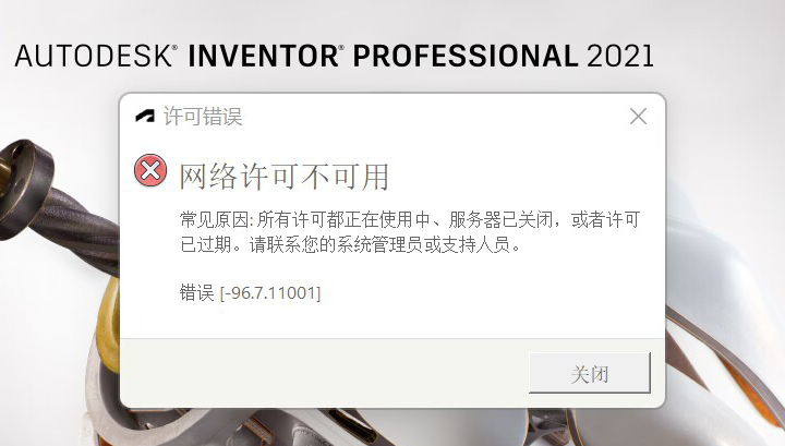 常见原因:所有许可都正在使用中、服务器已关闭,或者许可已过期。请联系您的系统管理员或支持人员。