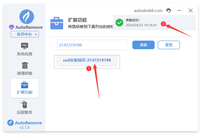 2. 点击出现的按钮,提示修复成功既可尝试重新安装软件