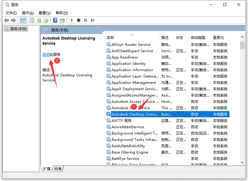 手动安装Autodesk Desktop Licensing Service之后,启动服务提示错误1067,