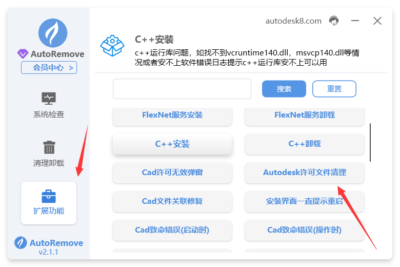 1. 打开autoremove,点击扩展功能,找到