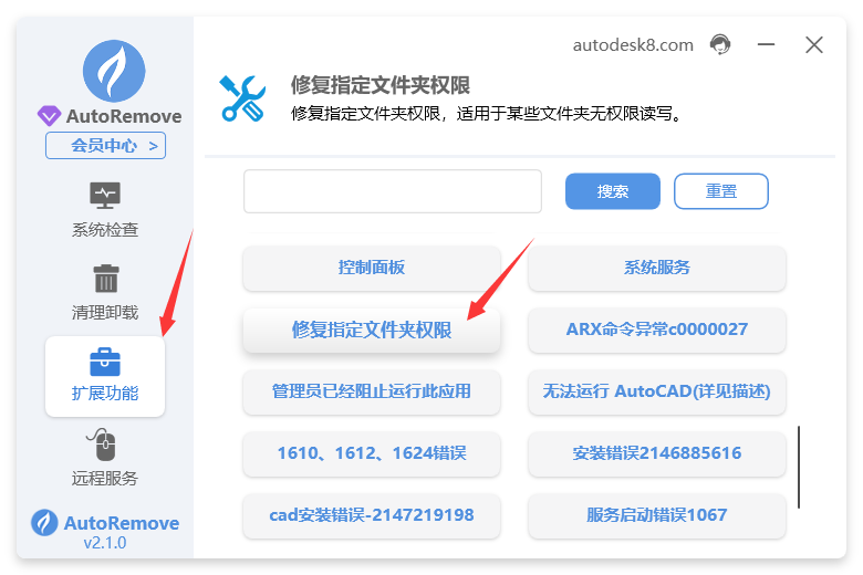 3. 打开autoremove,扩展功能,指定文件夹权限