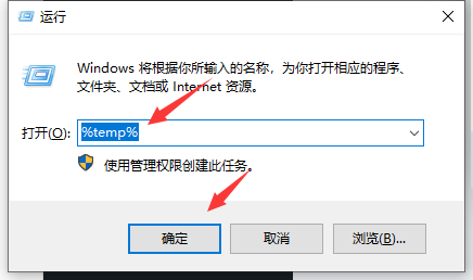 1.同时按住win加r键,出现运行框,输入%temp%回车