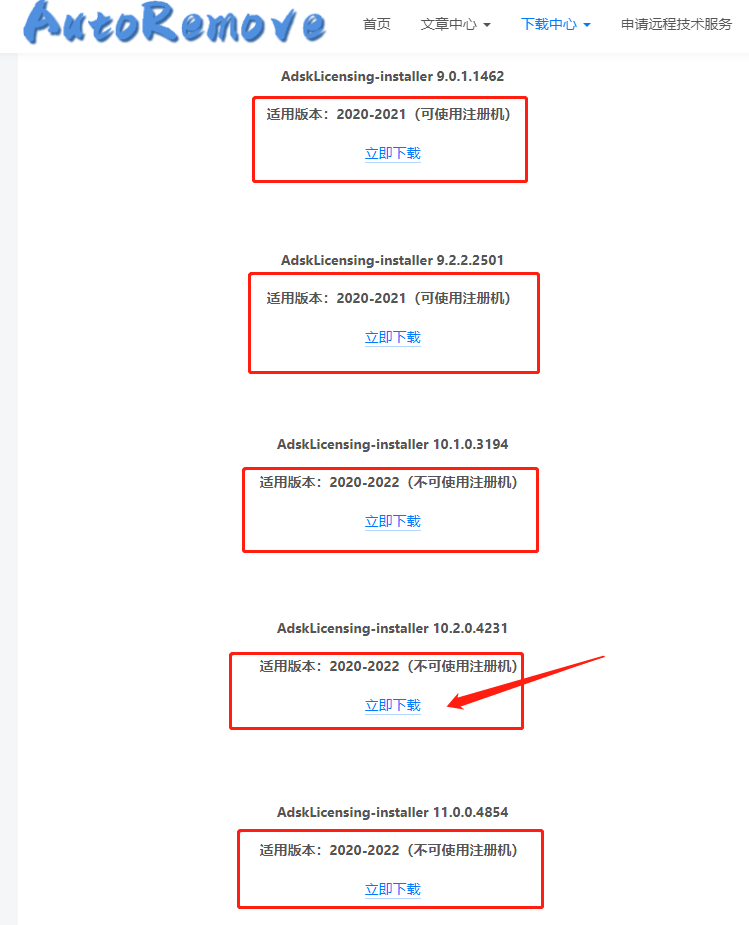 二、进入adsk服务下载页面后根据cad版本和您的实际需求下载对应安装包