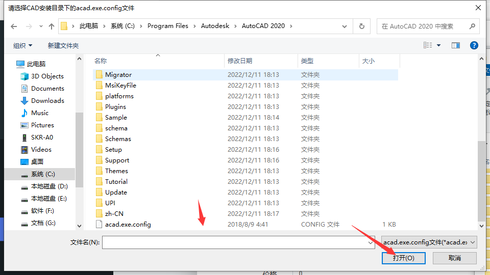 8.选择到你的安装目录,类似图里这种结构,点击选择文件夹。然后再重新点击扩展 cad致命错误操作时 按照前面教程操作。