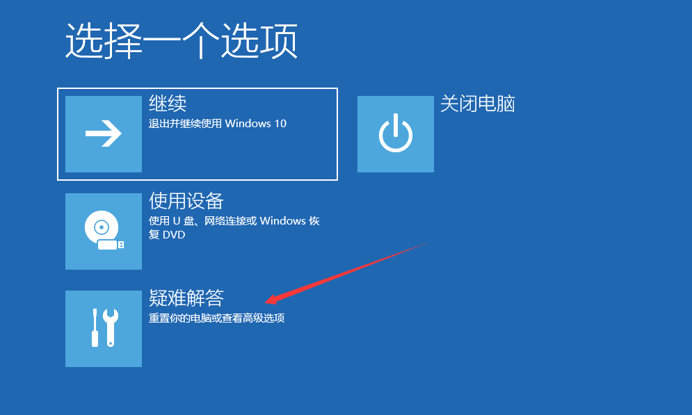 使用电脑的重启按钮或长按关机键强制关机后再启动,如此反复数次,直至出现【系统修复】选项。
