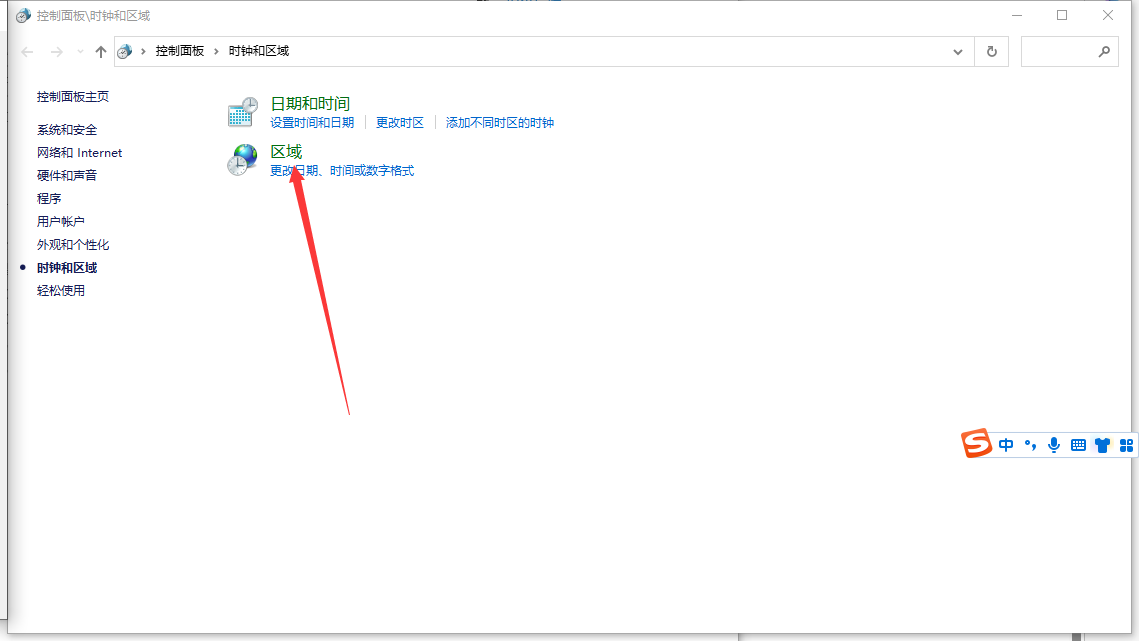 在"日期时间和区域格式设置"中,点击"区域"选项。